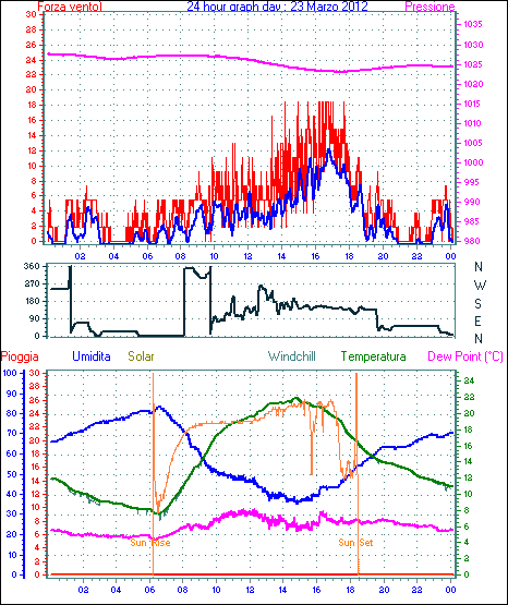 Il massimo windspeed = 20.4 kmh from 090°( E ) giorno 06 tempo 13:45