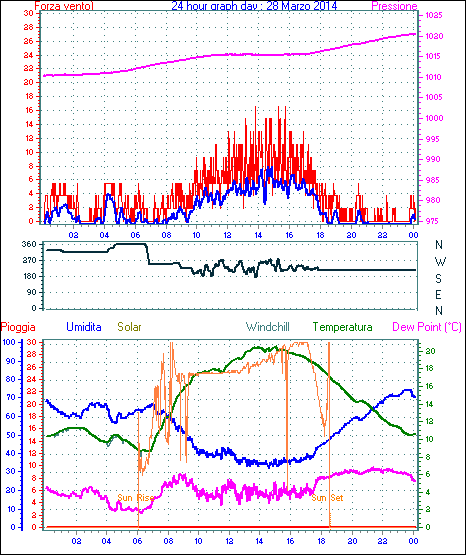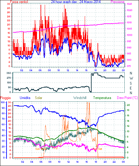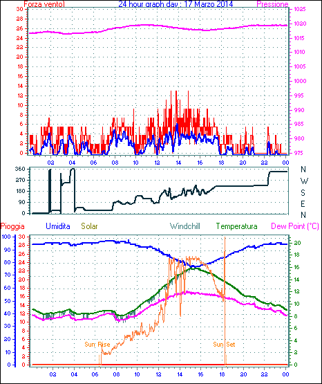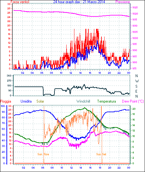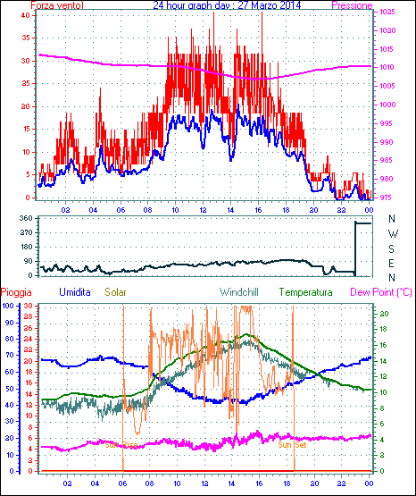 Velocità massima di raffica = 18.5 km/h da 135°( SE) giorno 03 tempo 15:42