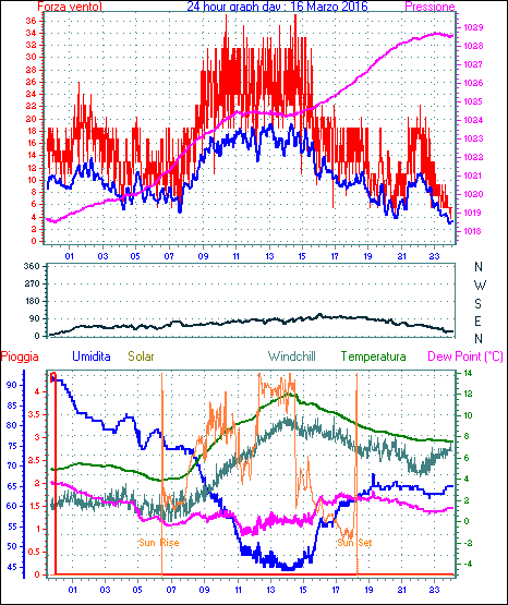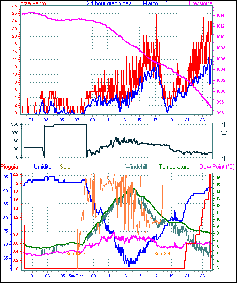 Il massimo windspeed = 38.9 kmh from 045°( NE) giorno 03 tempo 02:51