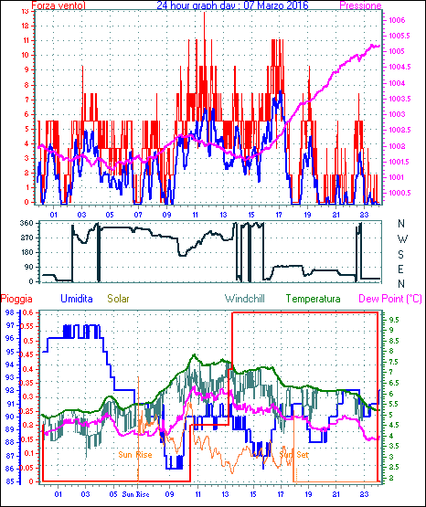 Maximum dewpoint = 6.7°C giorno 03 tempo 00:38