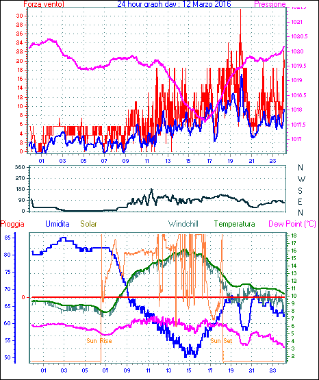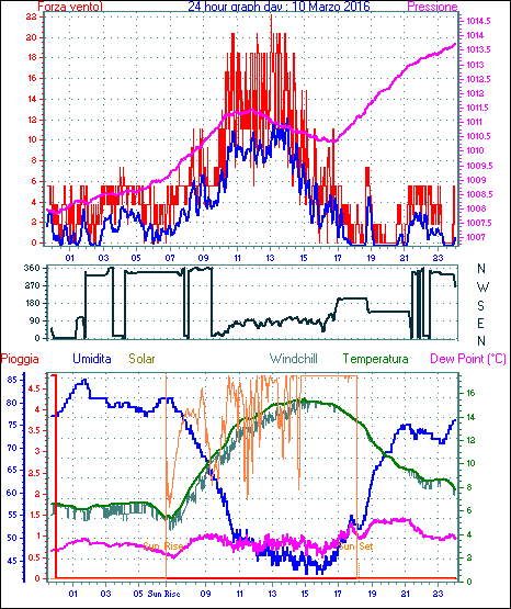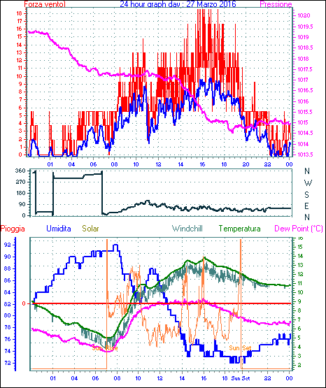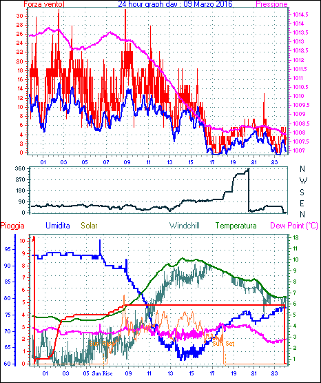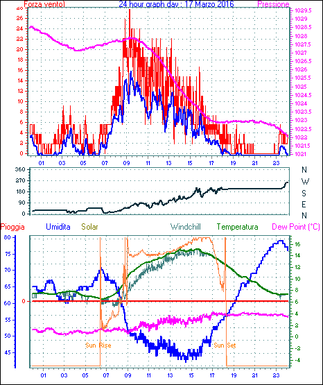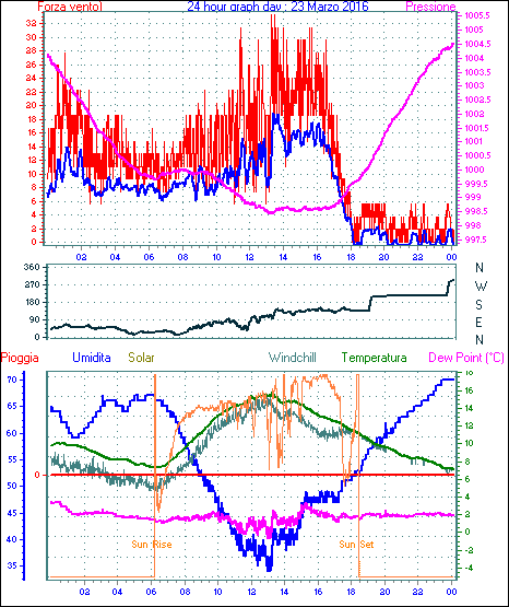 Velocità massima di raffica = 53.7 km/h da 045°( NE) giorno 03 tempo 05:48