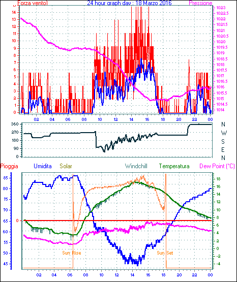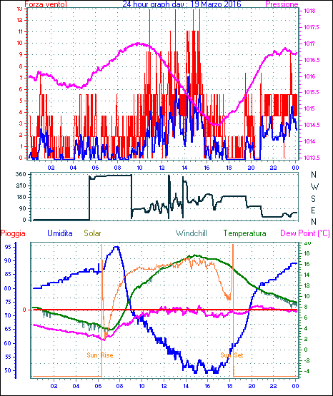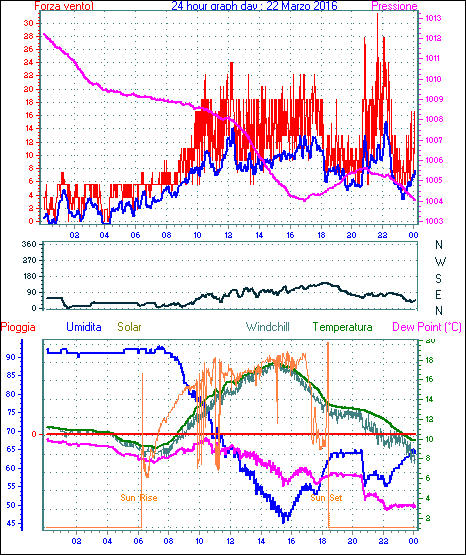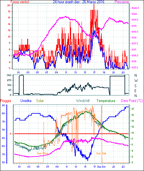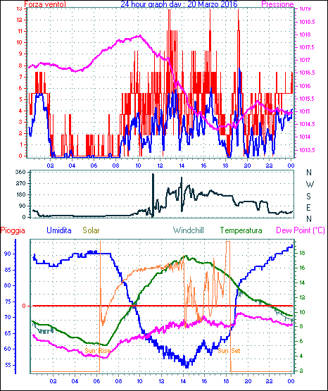Il massimo windspeed = 18.5 km/h giorno 02 tempo 23:11