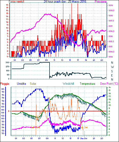 Velocità massima di raffica = 14.8 km/h da 248°(WSW) giorno 01 tempo 15:30