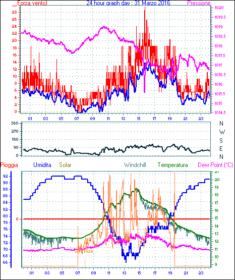 Il massimo windspeed = 16.6 km/h giorno 31 tempo 16:23