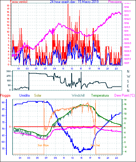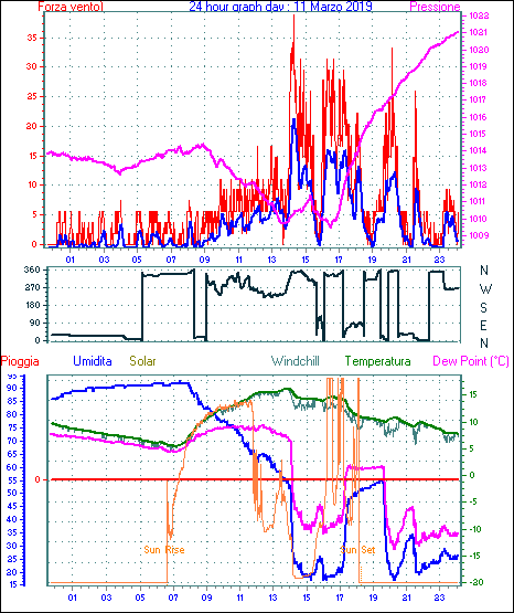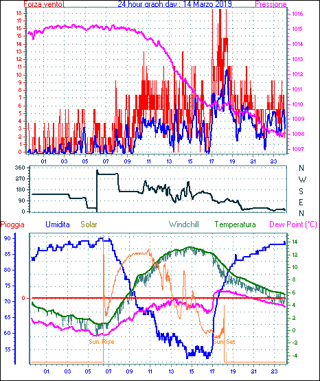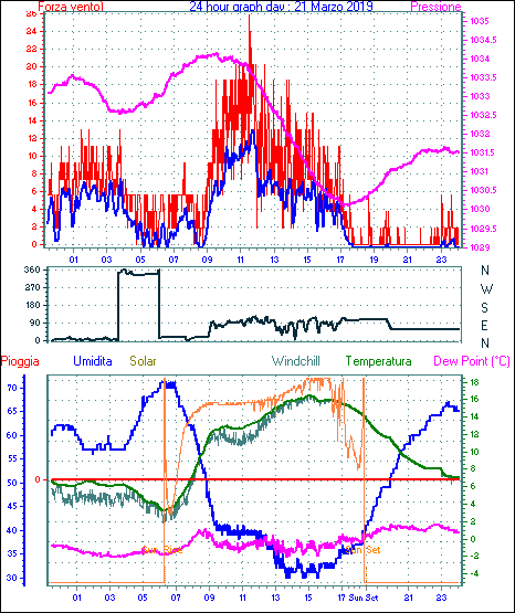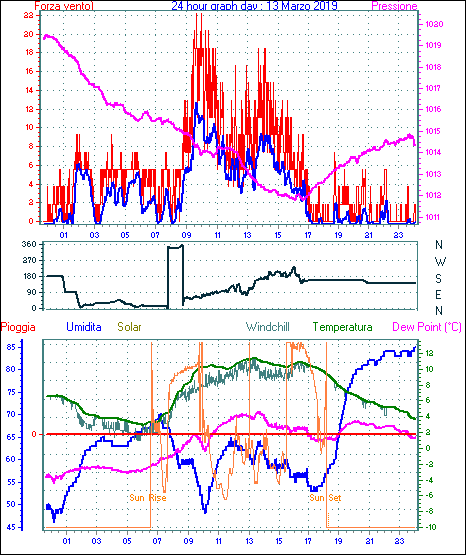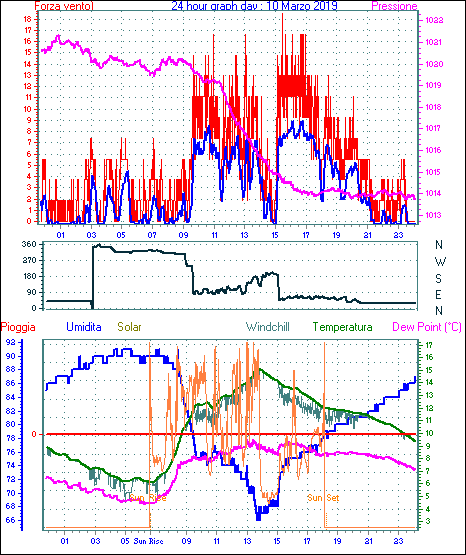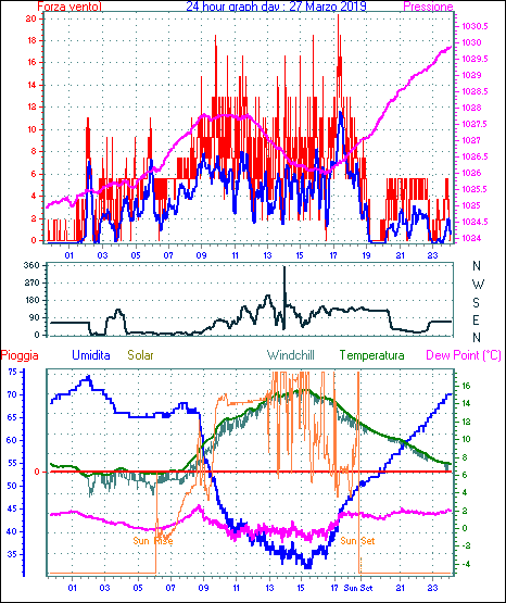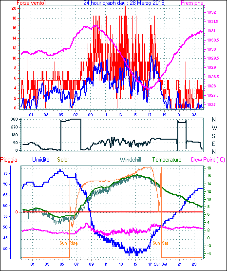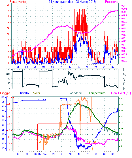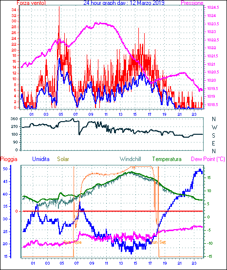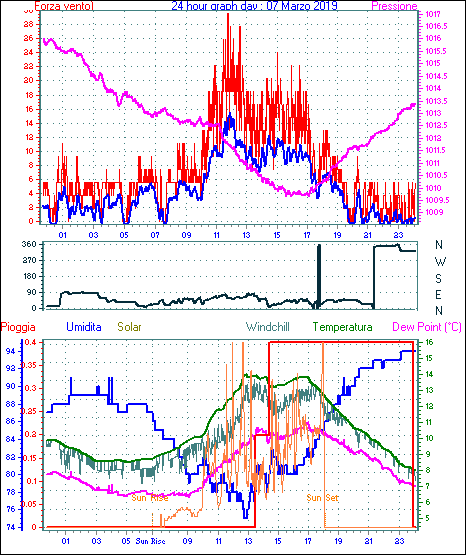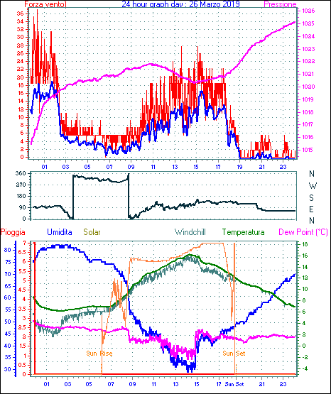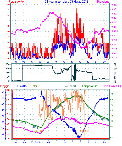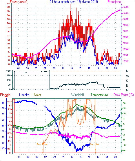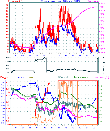 Velocità massima di raffica = 18.5 km/h da 315°( NW) giorno 04 tempo 19:27