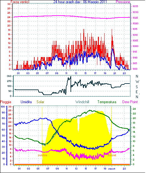 Velocità massima di raffica = 20.4 km/h da 135°( SE) giorno 03 tempo 18:46