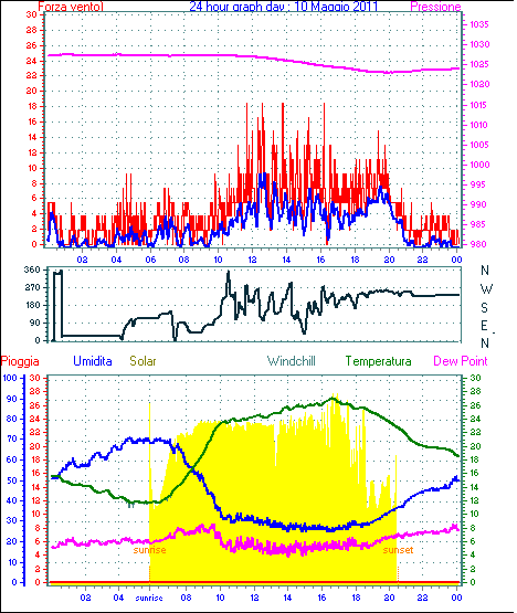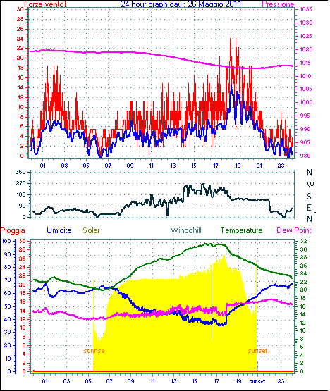 Velocità massima di raffica = 25.9 km/h da 135°( SE) giorno 02 tempo 15:24