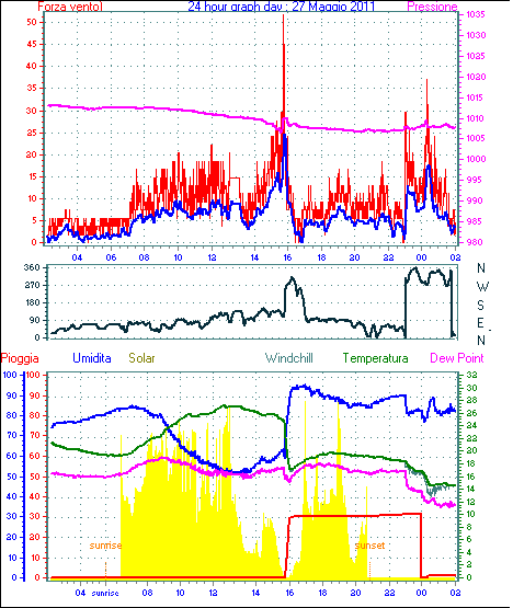 Velocità massima di raffica = 51.8 km/h from 270°( W ) giorno 27 tempo 15:41