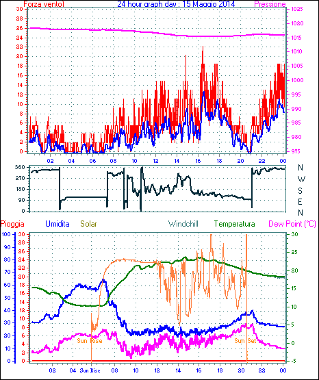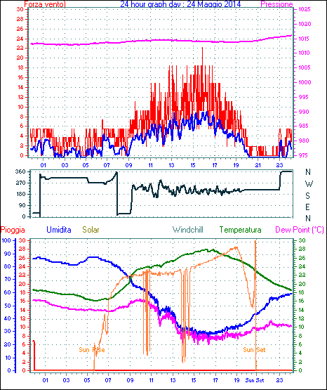 Velocità massima di raffica = 24.1 km/h da 158°(SSE) giorno 04 tempo 16:05