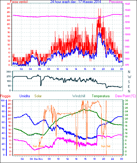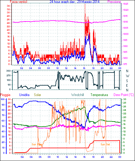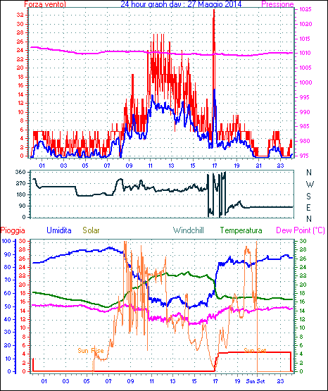 Velocità massima di raffica = 27.8 km/h da 338°(NNW) giorno 03 tempo 16:21