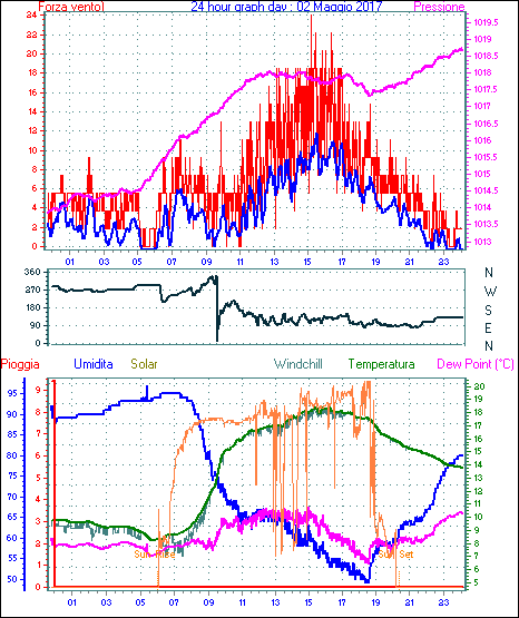 Velocità massima di raffica = 24.1 km/h da 113°(ESE) giorno 02 tempo 15:11