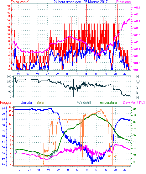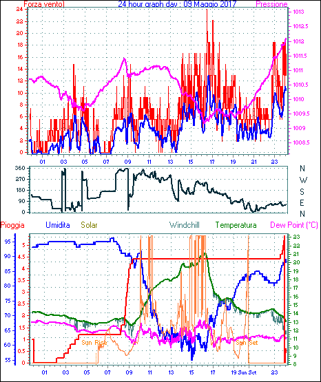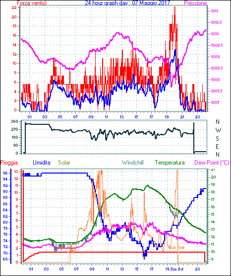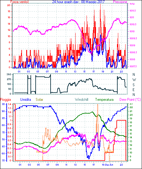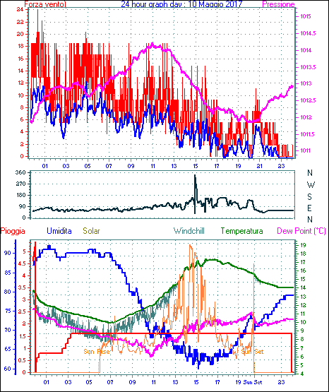 Velocità massima di raffica = 18.5 km/h da 248°(WSW) giorno 03 tempo 08:19