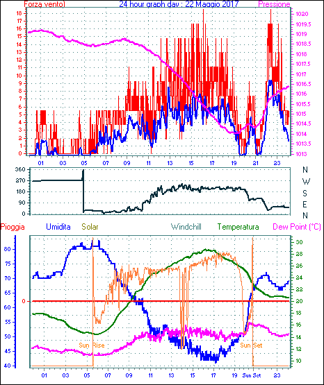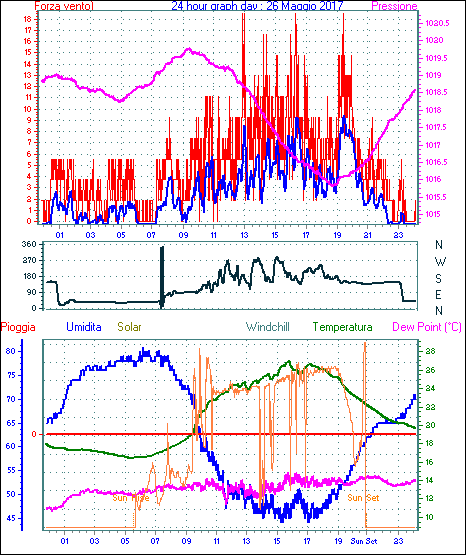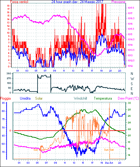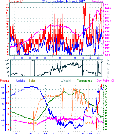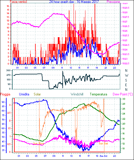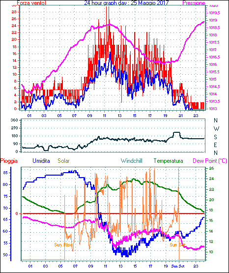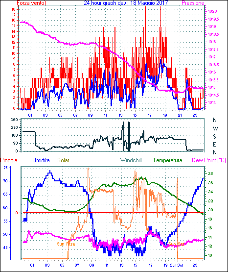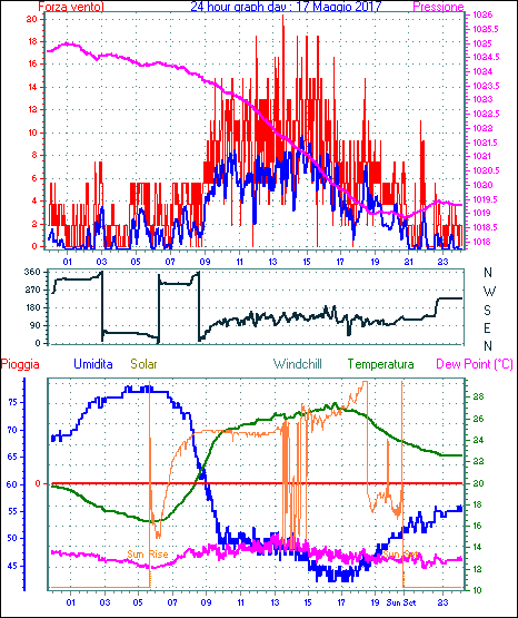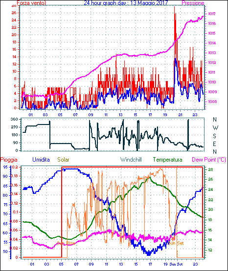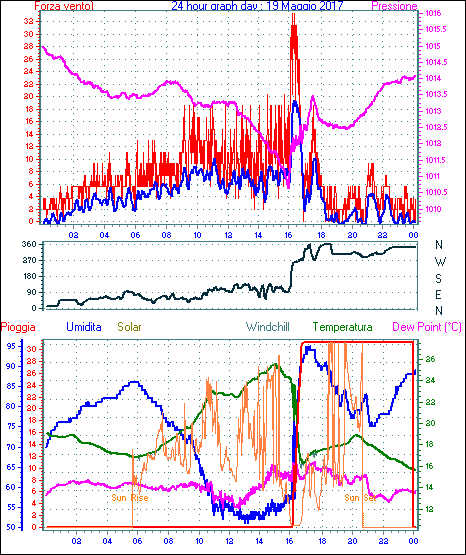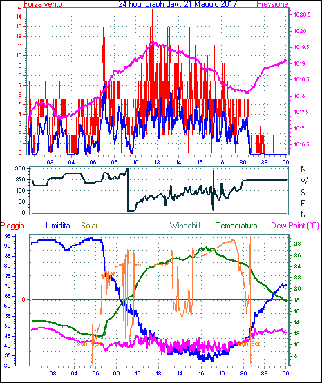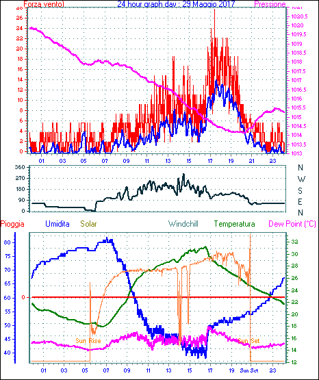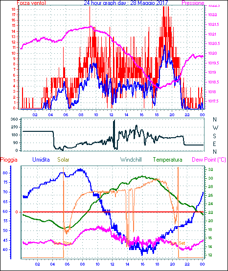 Il massimo windspeed = 27.8 kmh from 068°(ENE) giorno 15 tempo 18:01