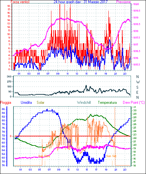 Minimum dewpoint = 16.1°C giorno 31 tempo 0:15