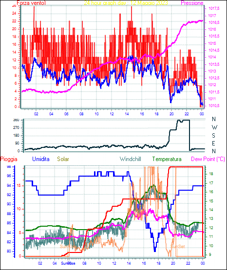 Maximum dewpoint = 12.1°C giorno 01 tempo 00:05