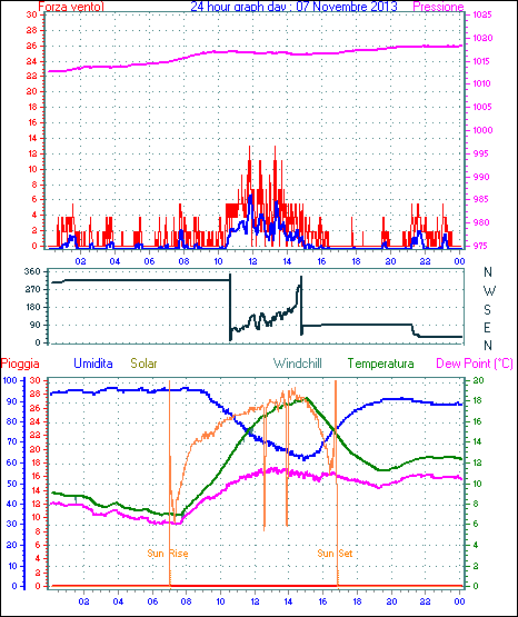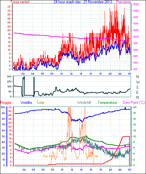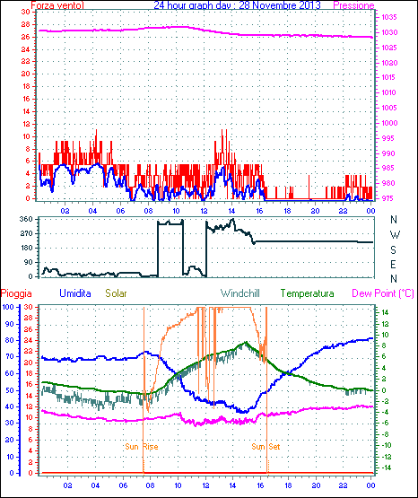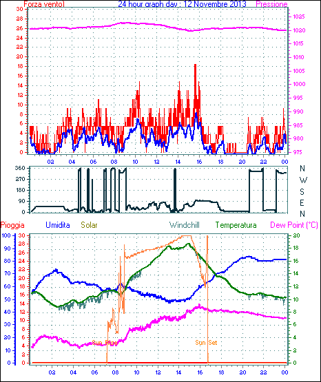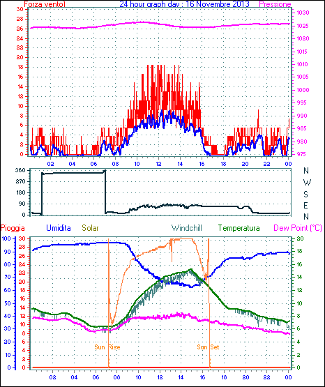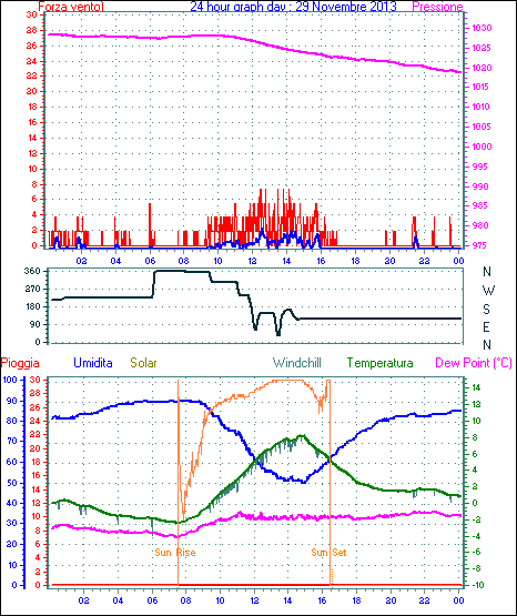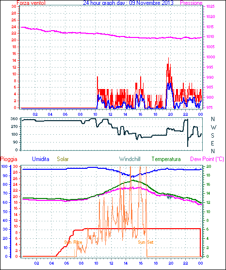 Velocità massima di raffica = 16.6 km/h da 045°( NE) giorno 30 tempo 12:09