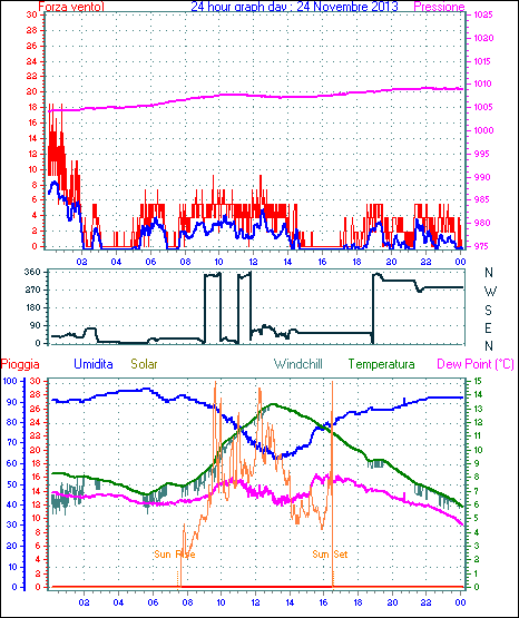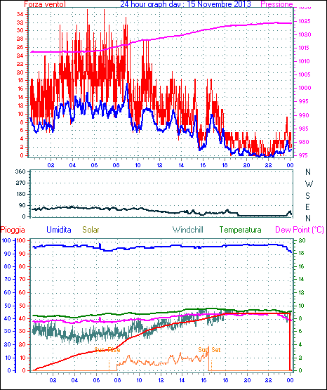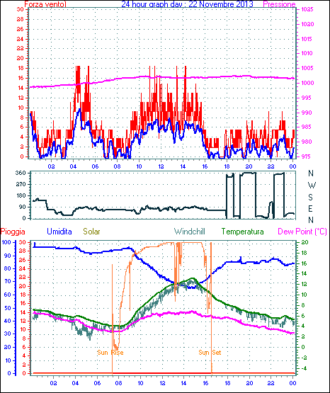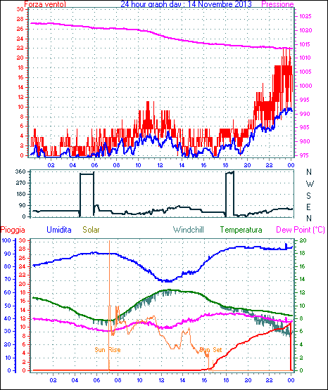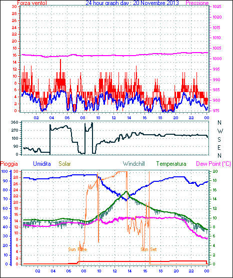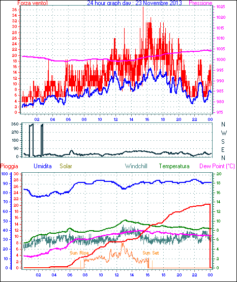 Il massimo windspeed = 20.4 kmh from 045°( NE) giorno 23 tempo 17:39