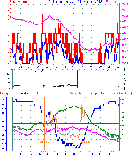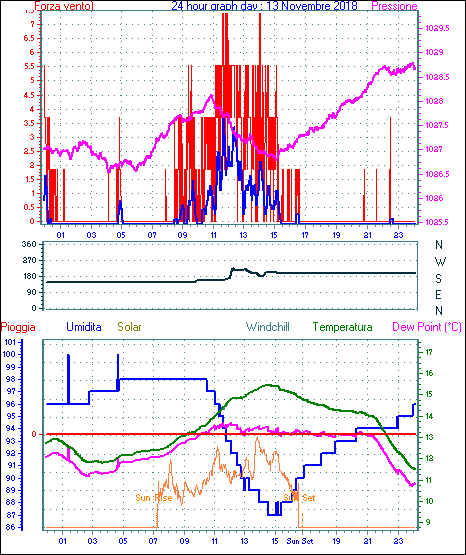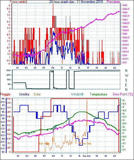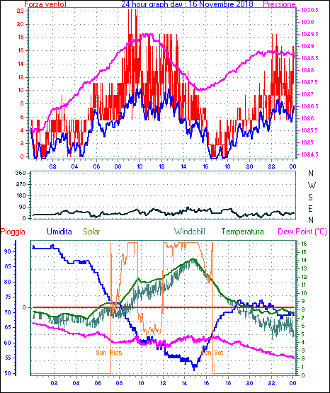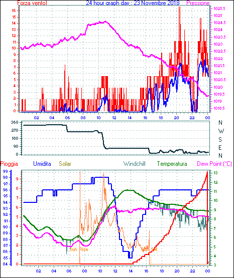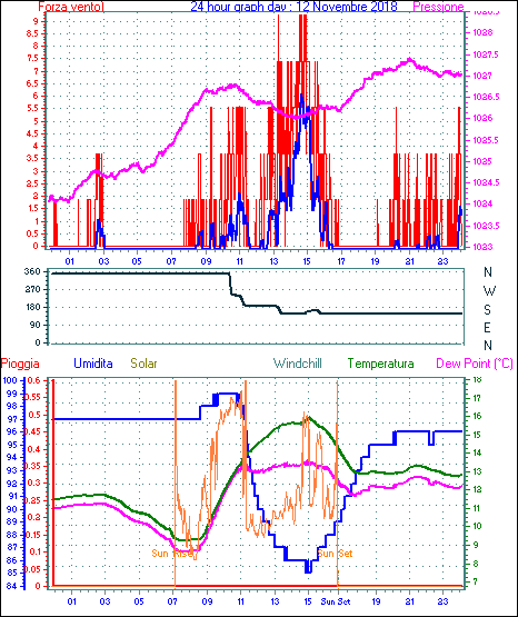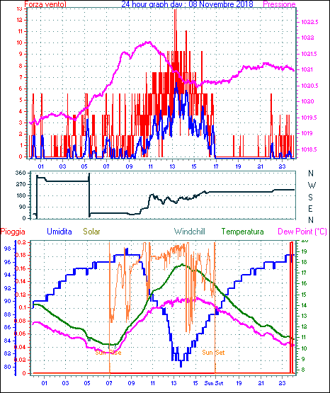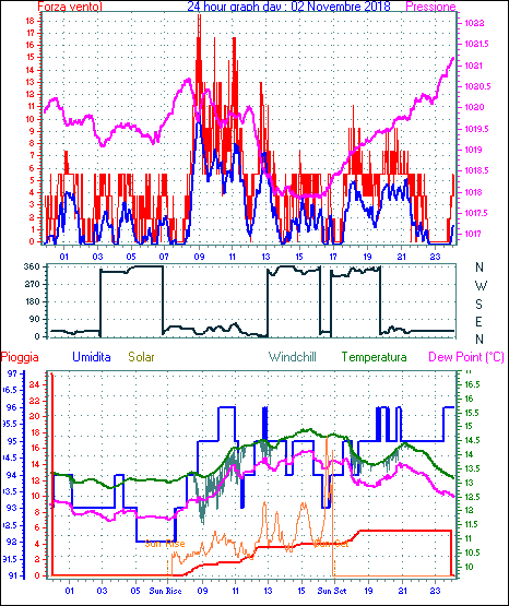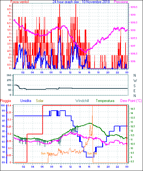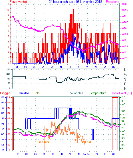 Velocità massima di raffica = 18.5 km/h da 023°(NNE) giorno 02 tempo 09:06