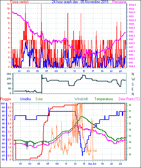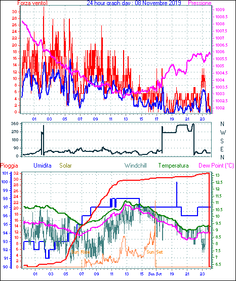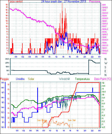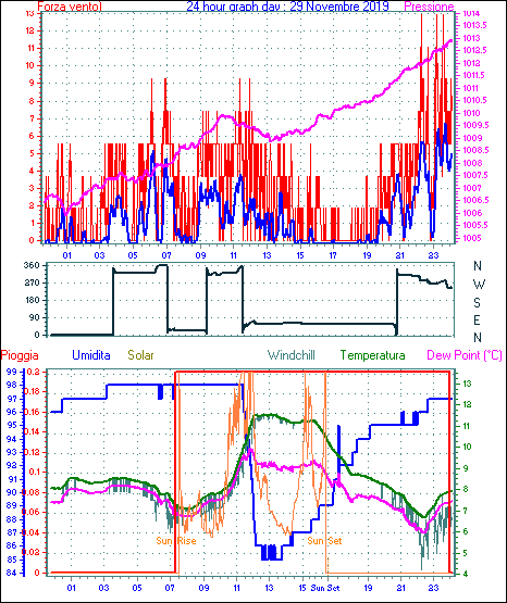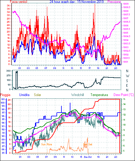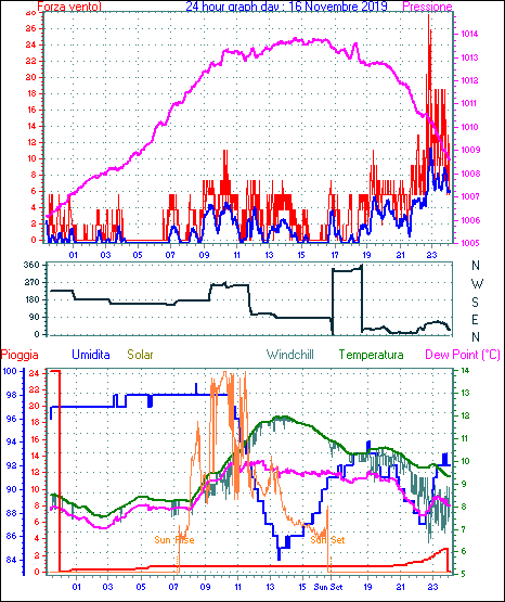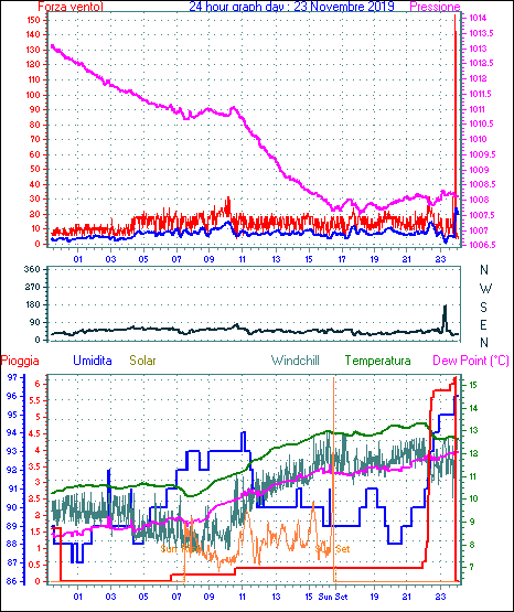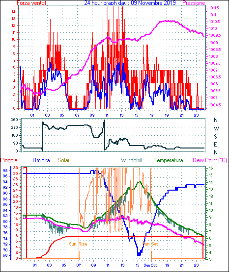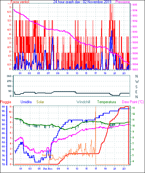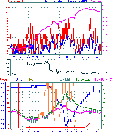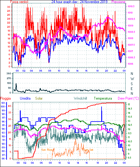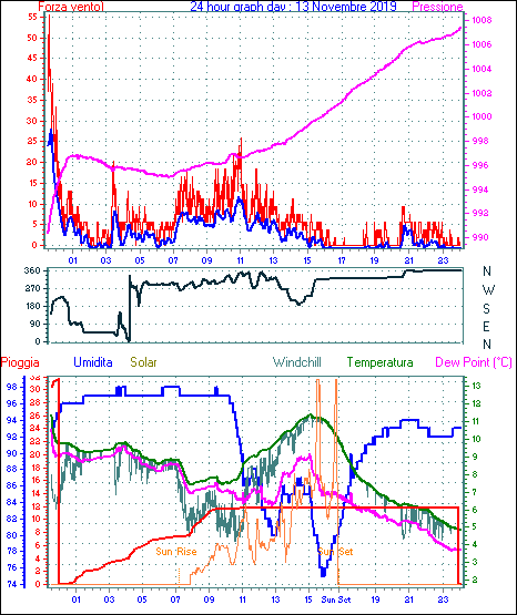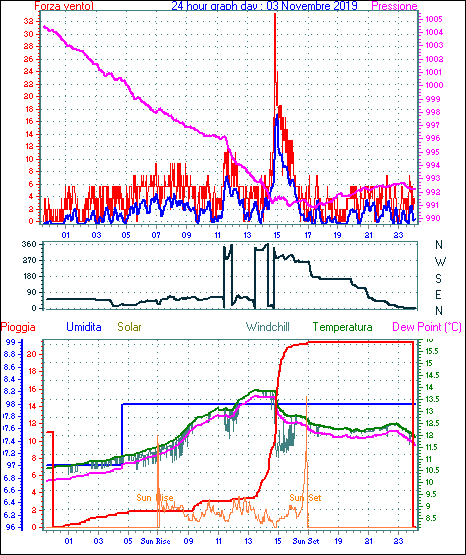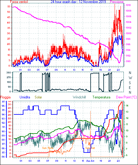Il massimo windspeed = 31.5 kmh from 203°(SSW) giorno 12 tempo 23:37