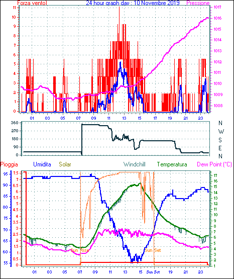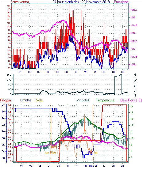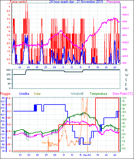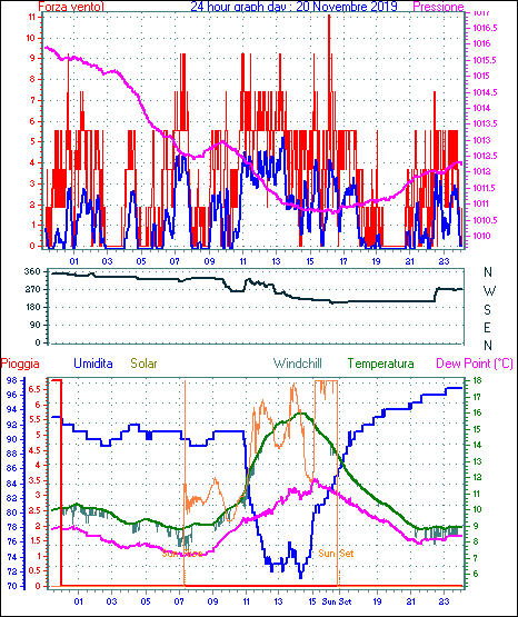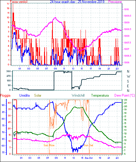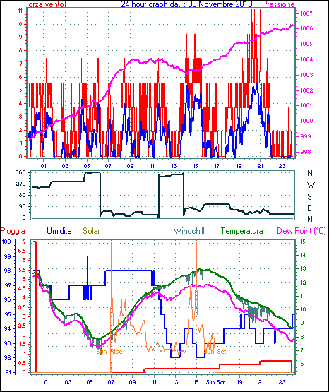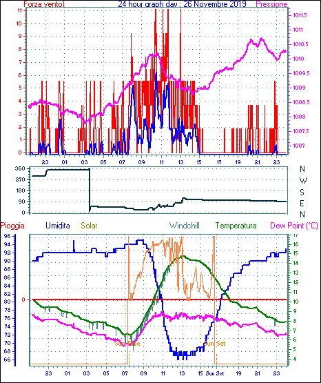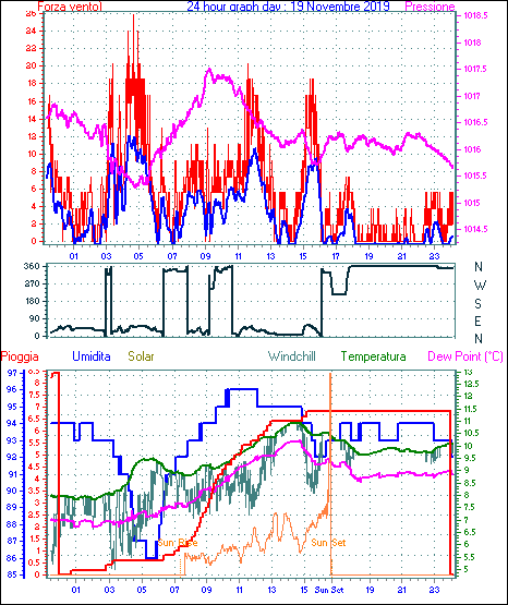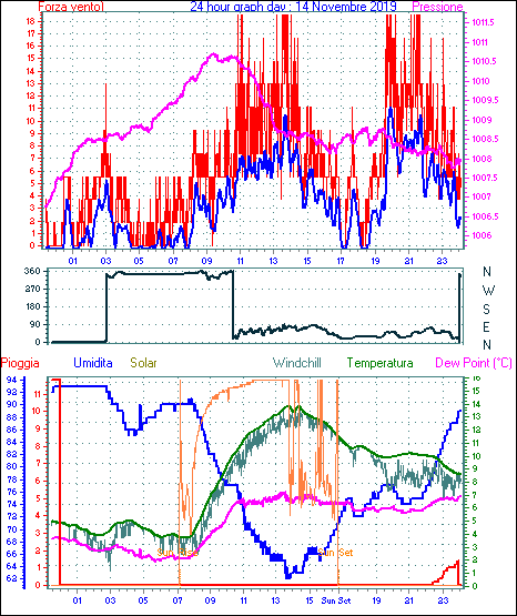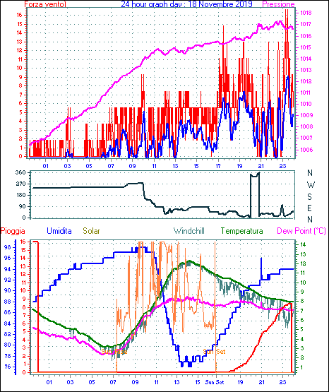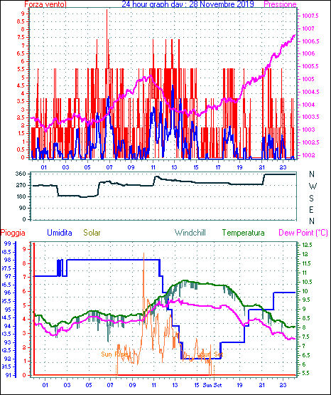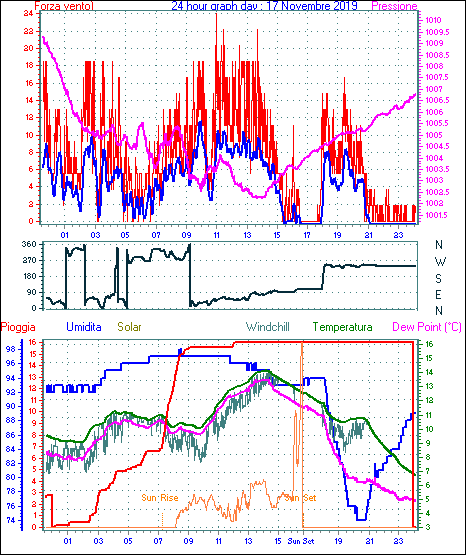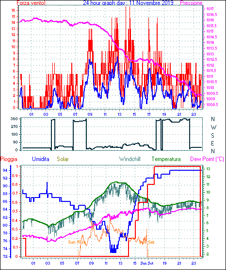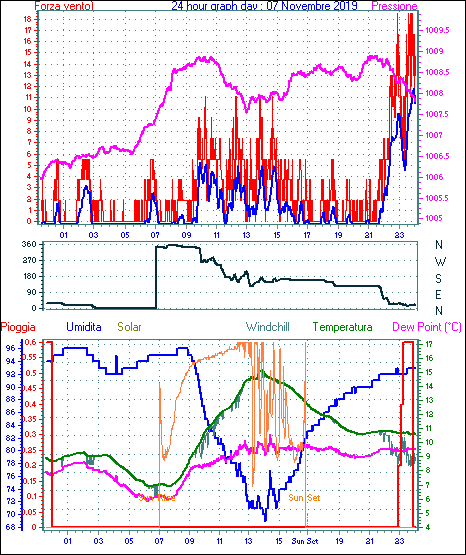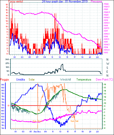 Il massimo windspeed = 31.5 kmh from 203°(SSW) giorno 12 tempo 23:37