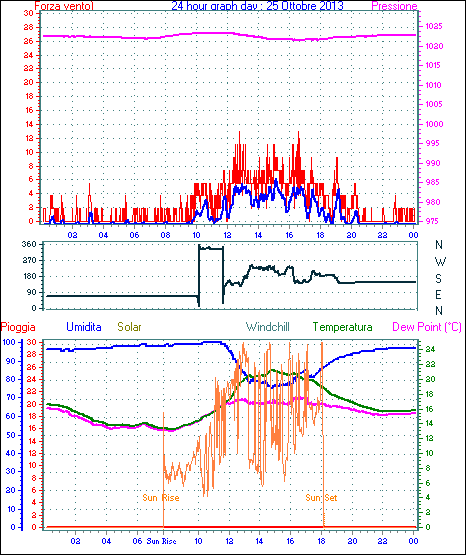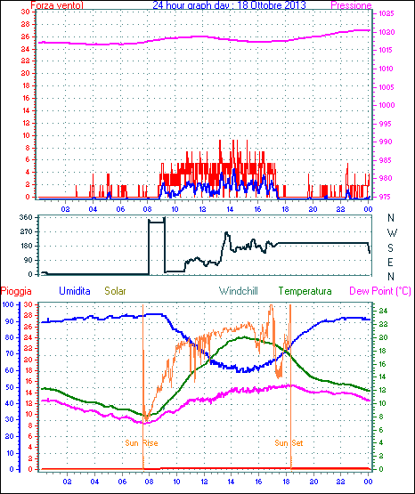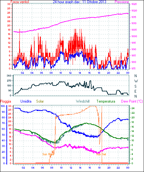 Velocità massima di raffica = 18.5 km/h da 113°(ESE) giorno 01 tempo 13:48