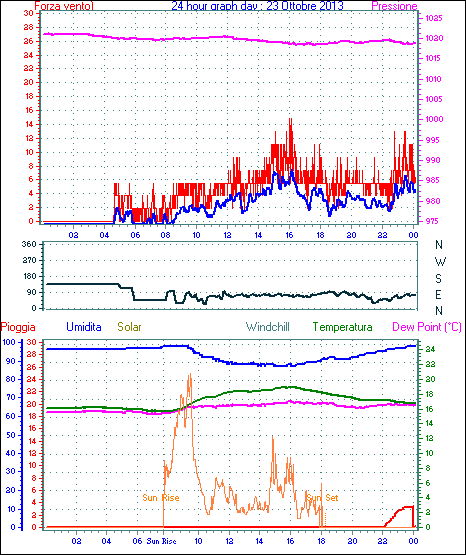 Velocità massima di raffica = 20.4 km/h da 068°(ENE) giorno 03 tempo 01:14