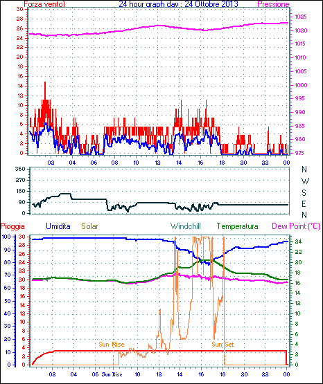 Velocità massima di raffica = 24.1 km/h da 068°(ENE) giorno 31 tempo 10:54