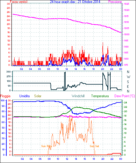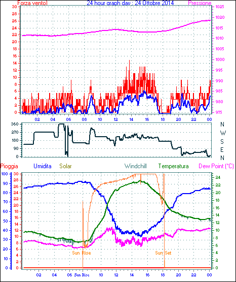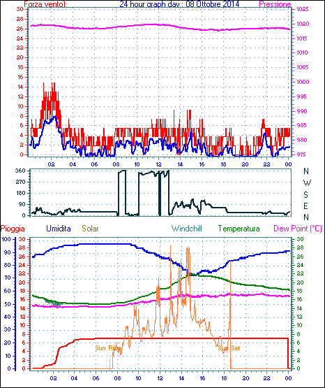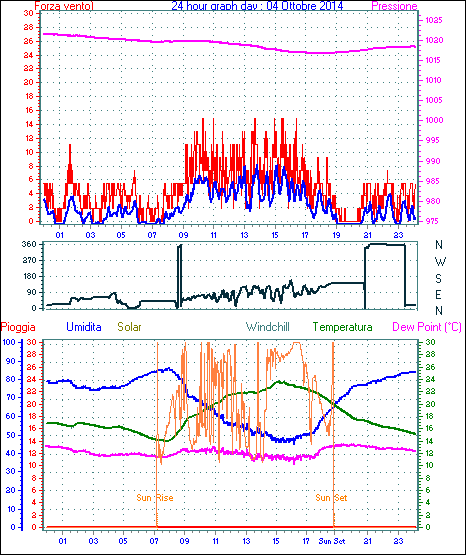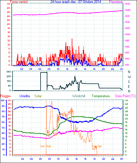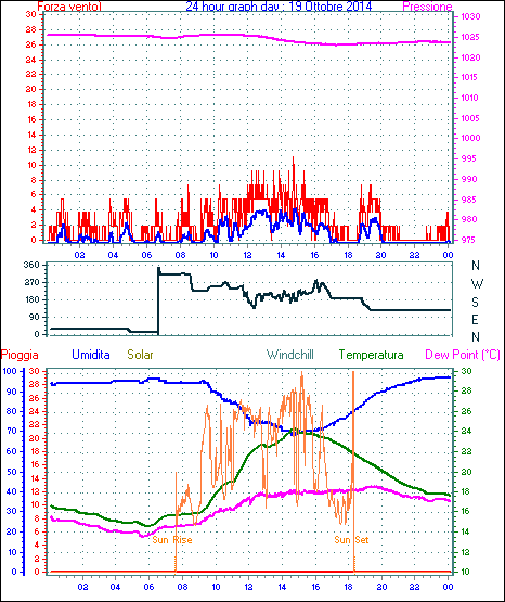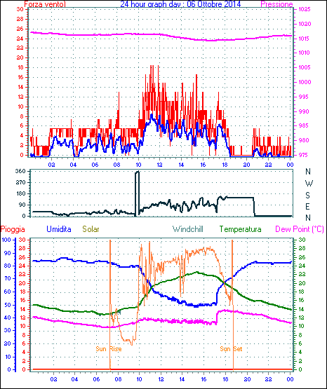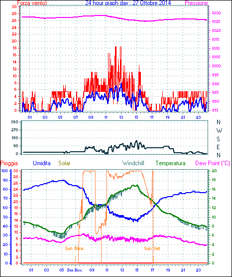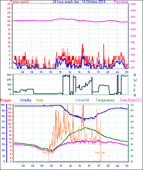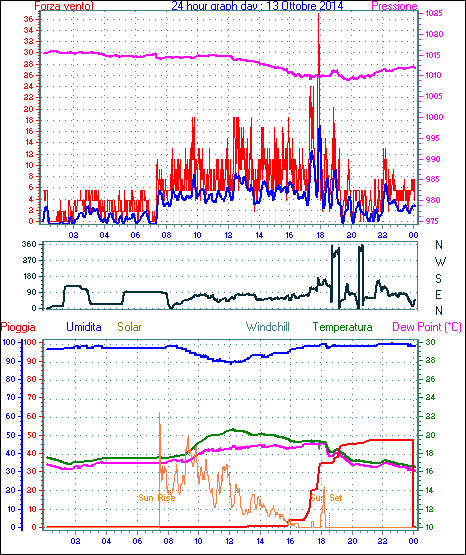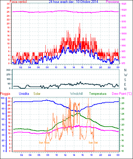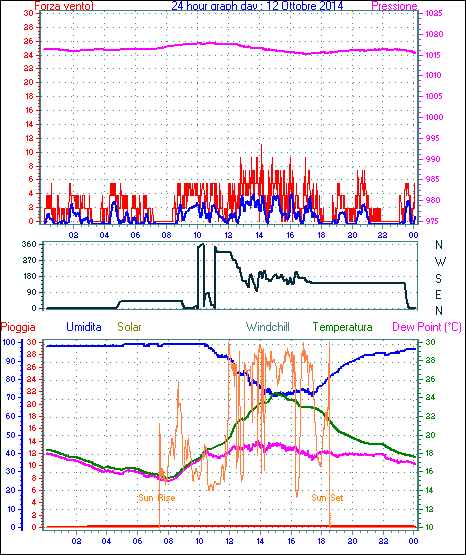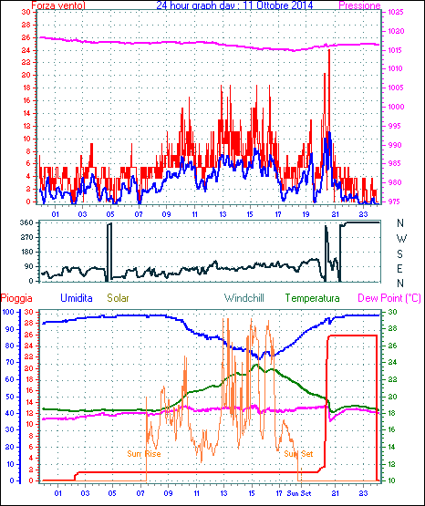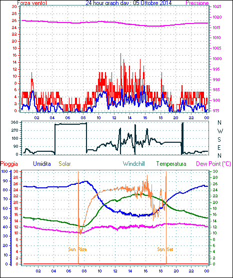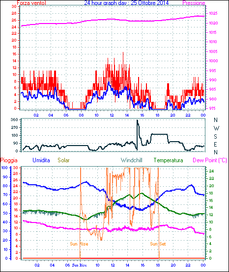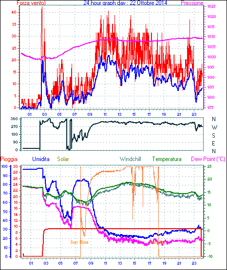 Il massimo windspeed = 25.9 kmh from 315°( NW) giorno 22 tempo 11:28