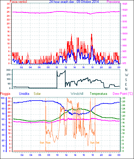 Velocità massima di raffica = 9.3 km/h da 270°( W ) giorno 30 tempo 14:34