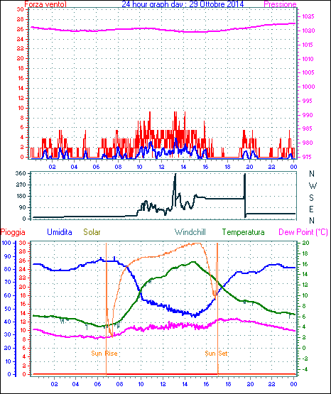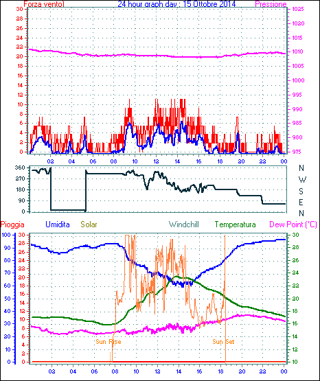 Velocità massima di raffica = 16.6 km/h da 135°( SE) giorno 03 tempo 15:08