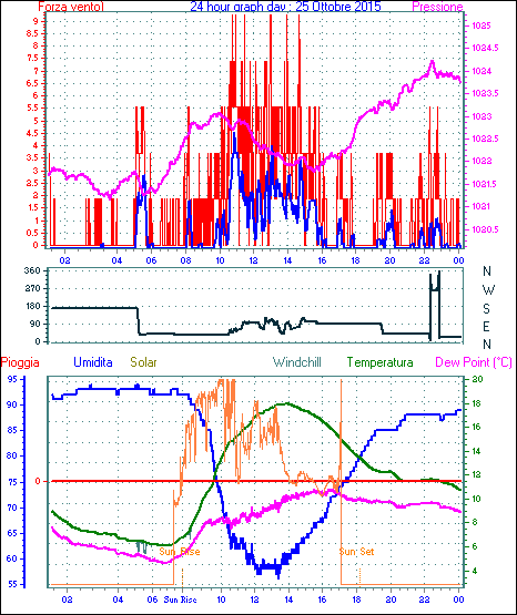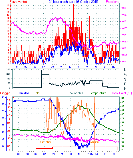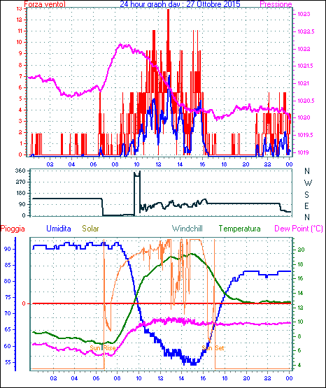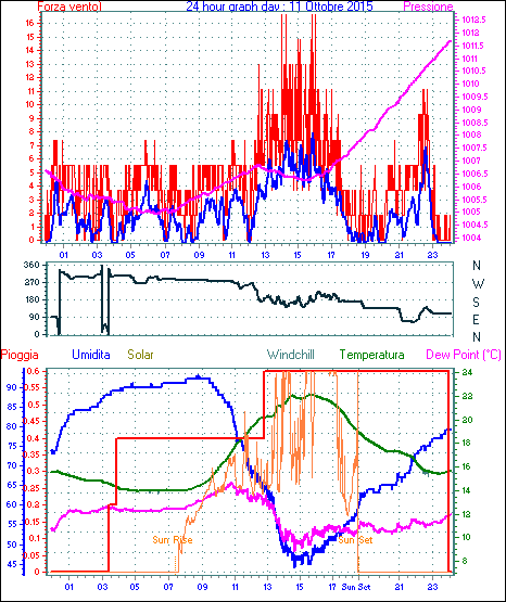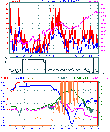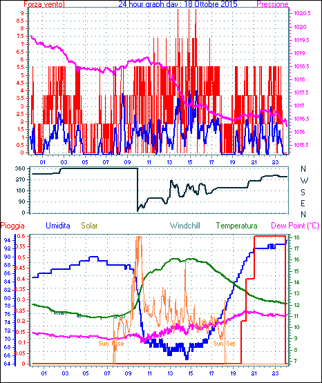 Velocità massima di raffica = 18.5 km/h da 045°( NE) giorno 03 tempo 09:57