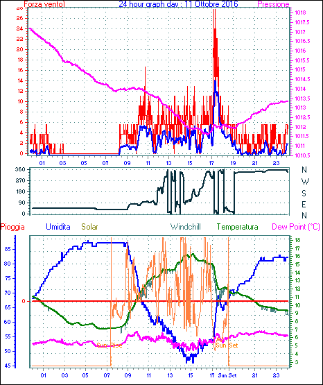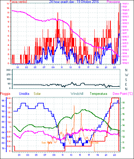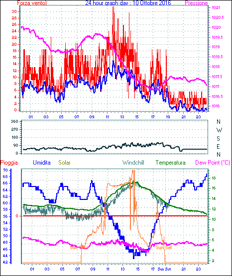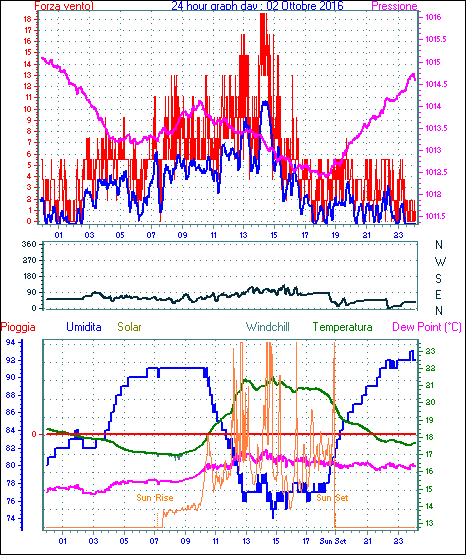 Velocità massima di raffica = 18.5 km/h da 090°( E ) giorno 02 tempo 14:29