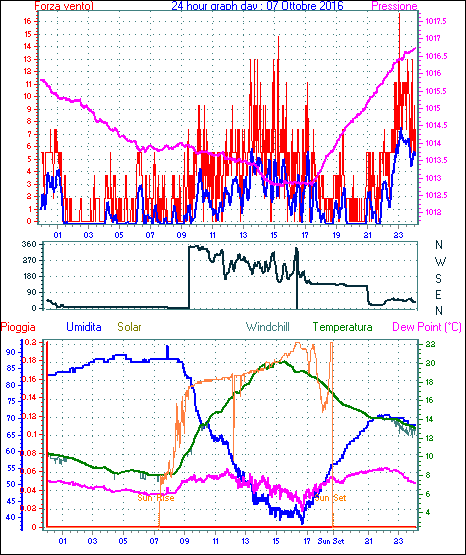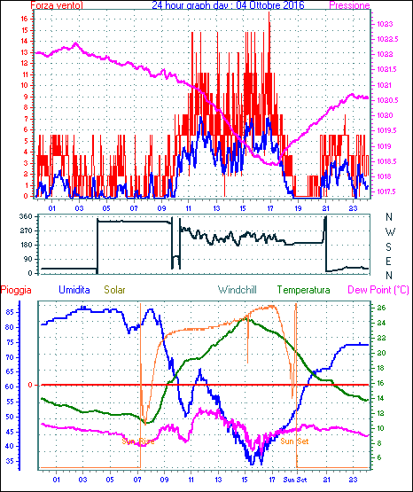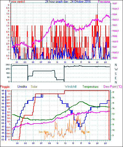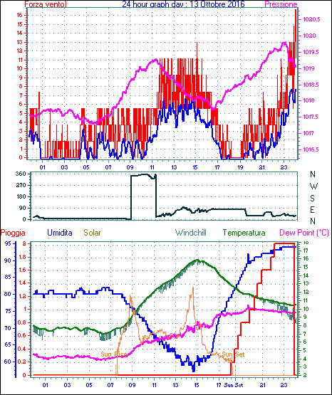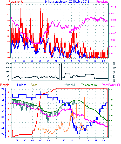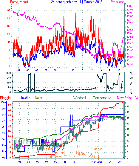Il massimo windspeed = 24.1 kmh from 045°( NE) giorno 14 tempo 13:36