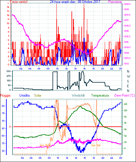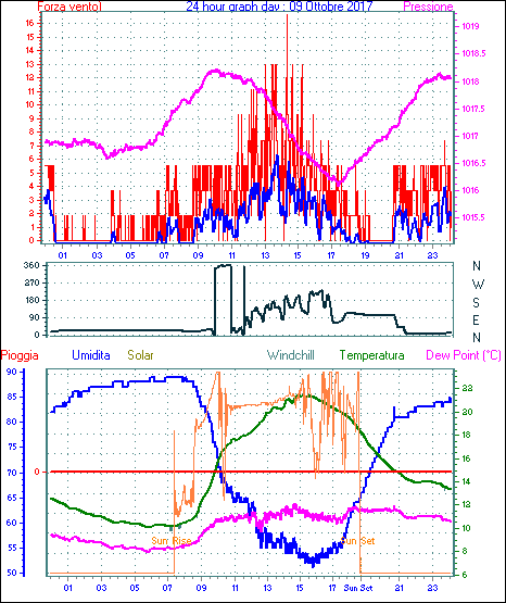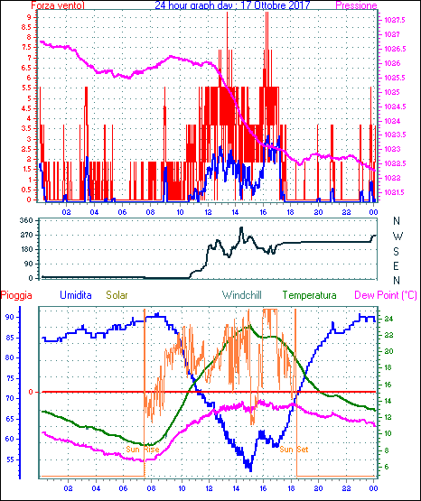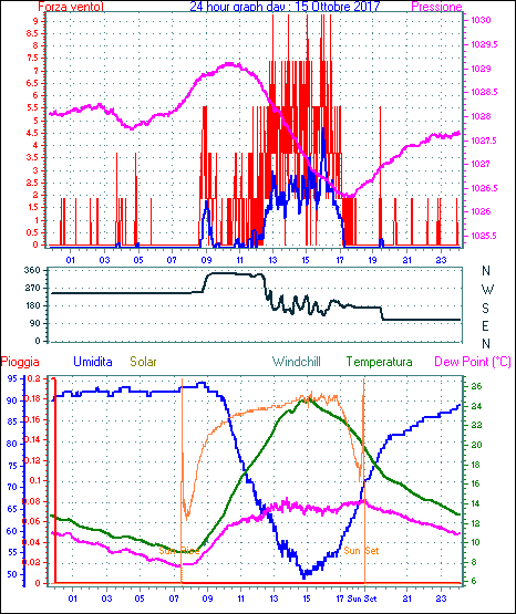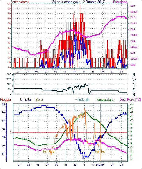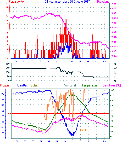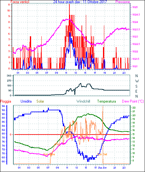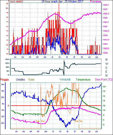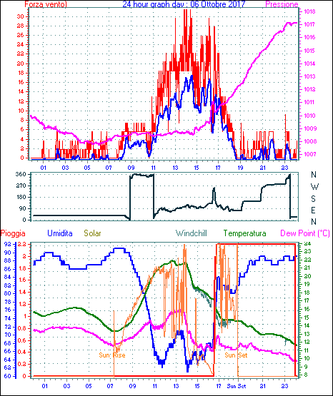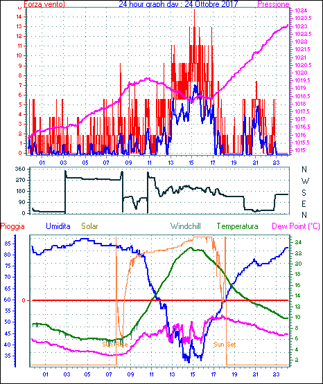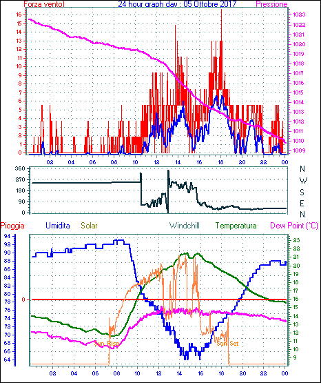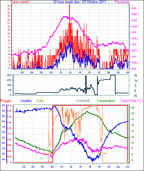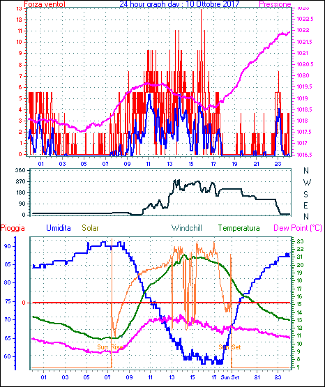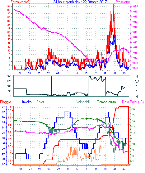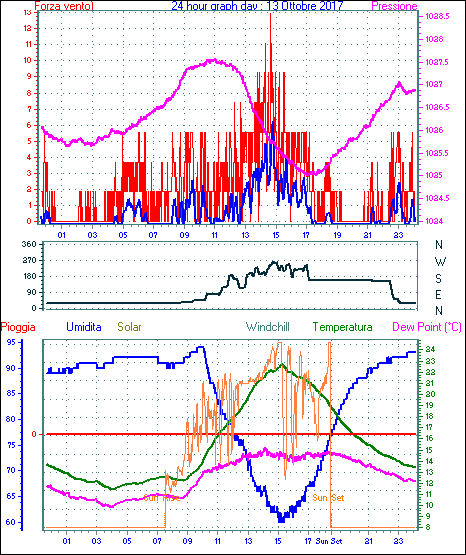 Il massimo windspeed = 24.1 kmh from 023°(NNE) giorno 22 tempo 20:45