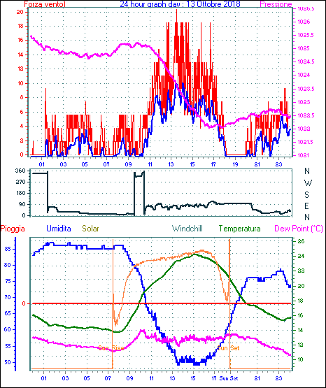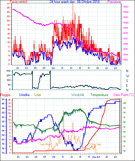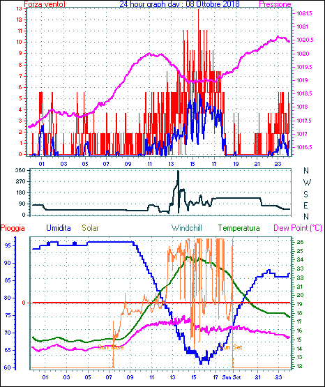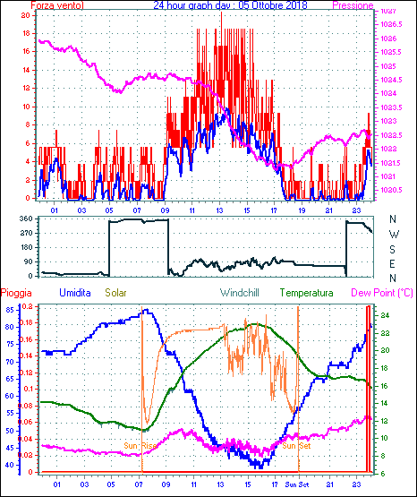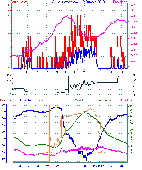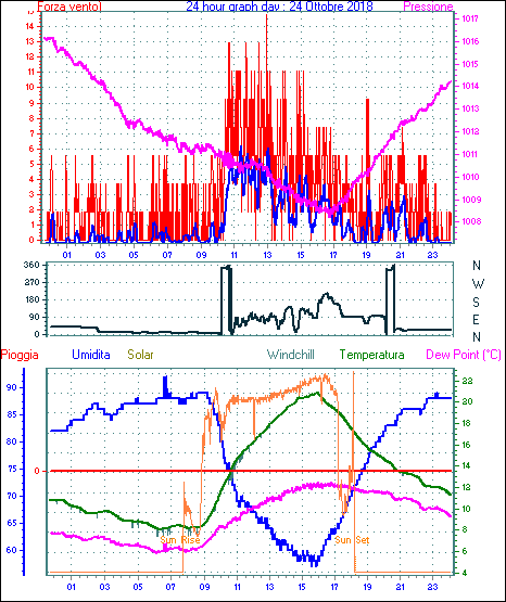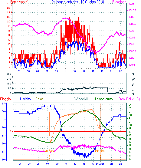 Velocità massima di raffica = 24.1 km/h da 045°( NE) giorno 04 tempo 11:48