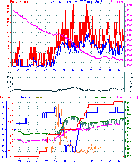 Il massimo windspeed = 38.9 kmh from 135°( SE) giorno 29 tempo 18:18