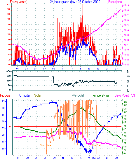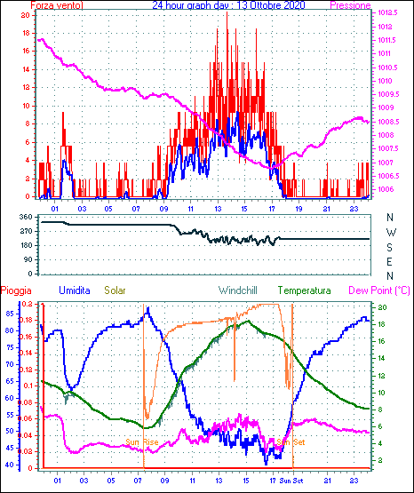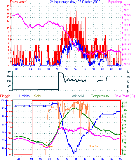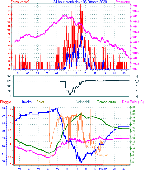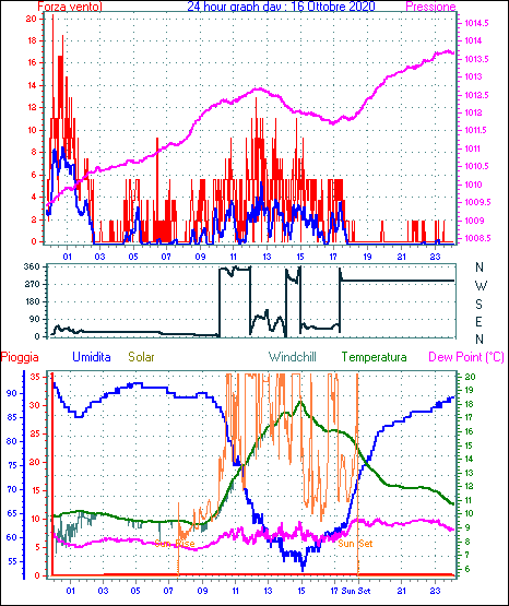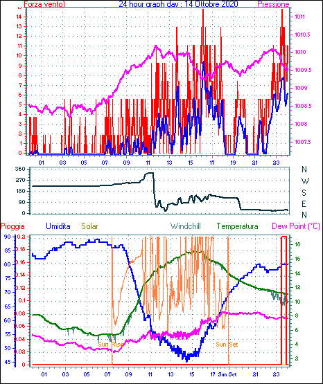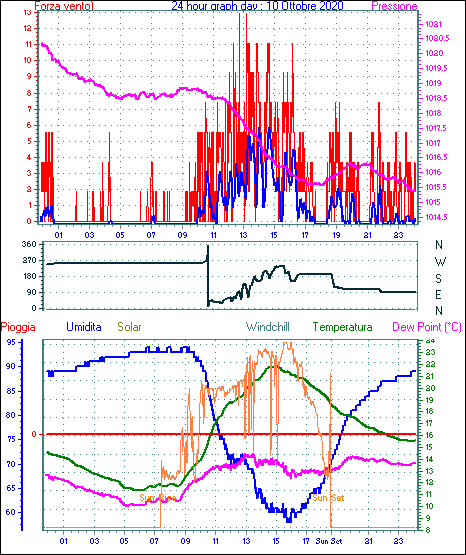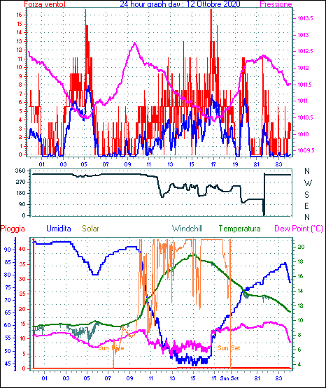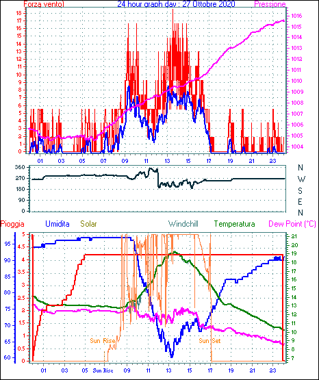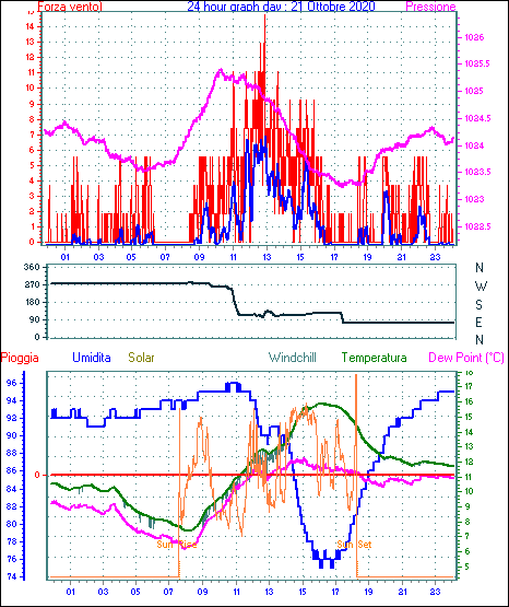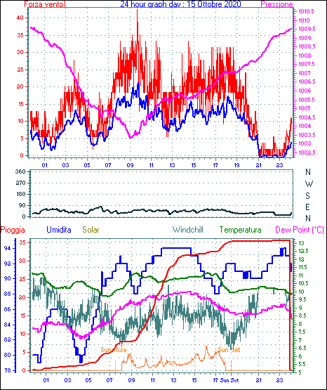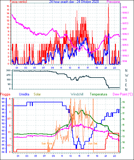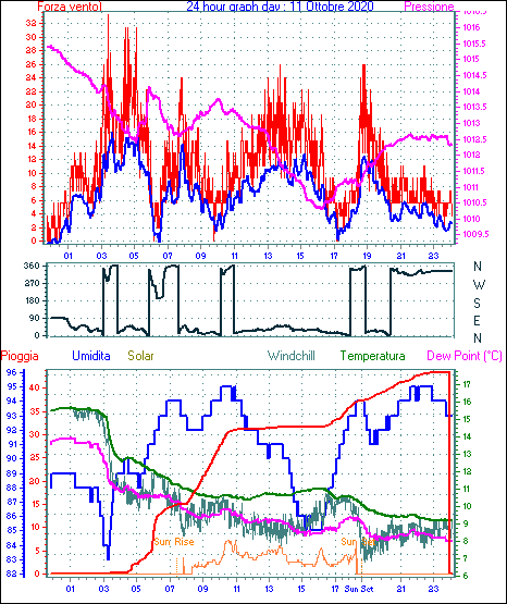 Il massimo windspeed = 24.1 kmh from 045°( NE) giorno 15 tempo 09:41