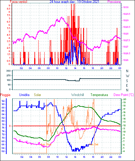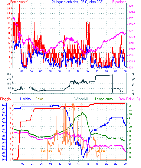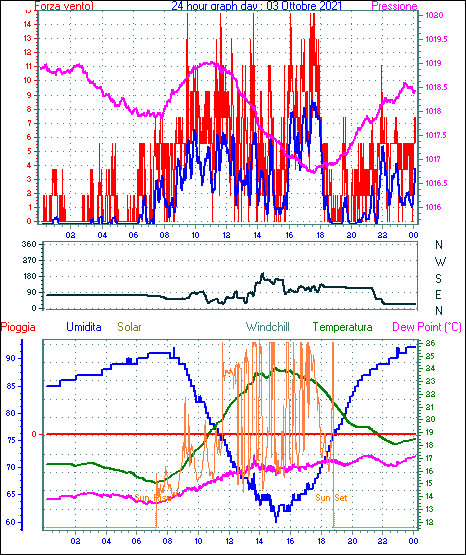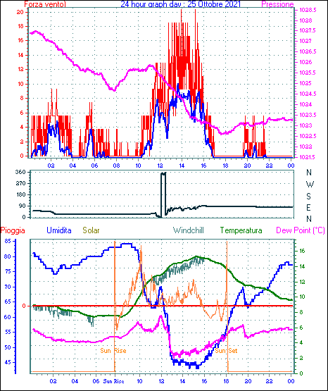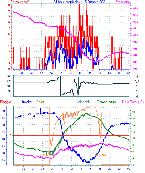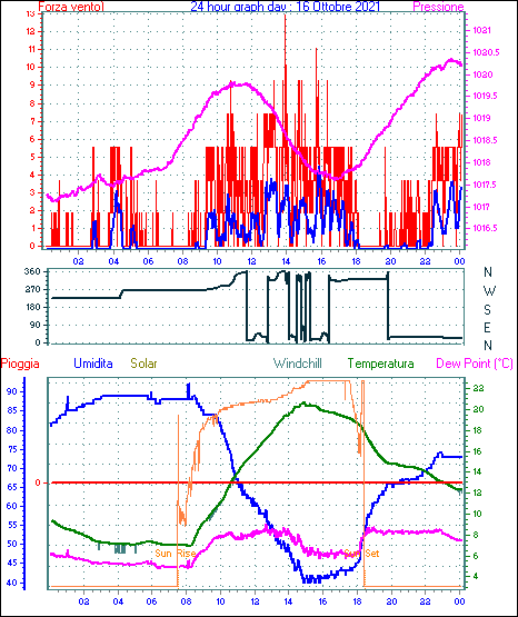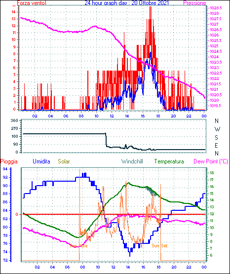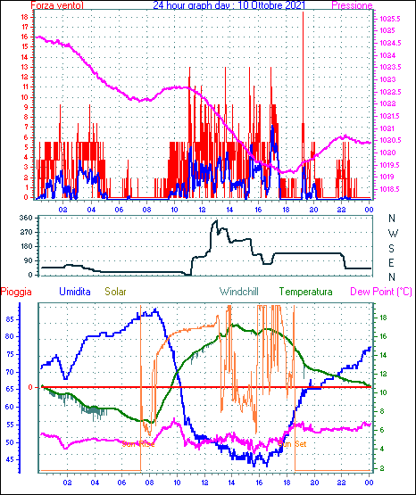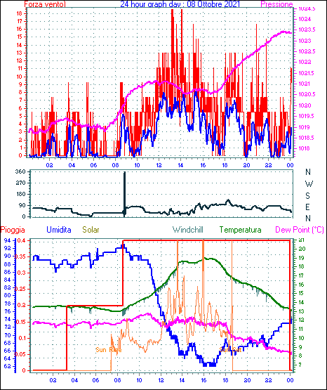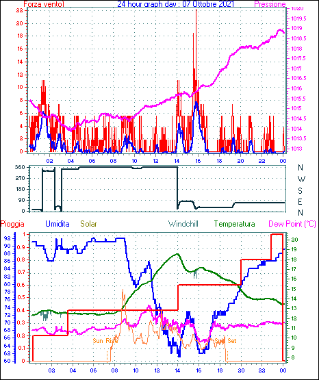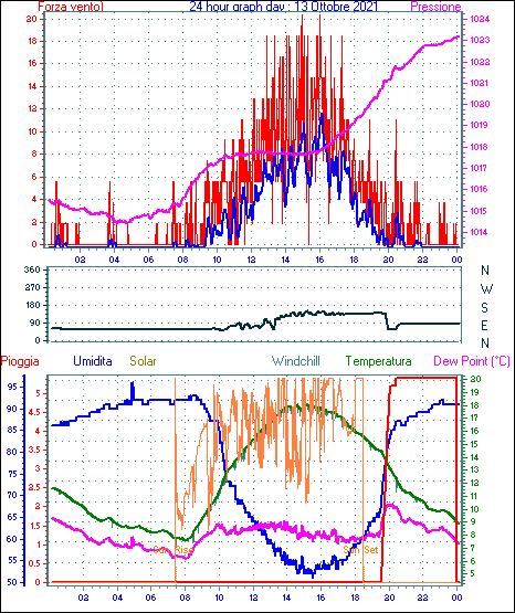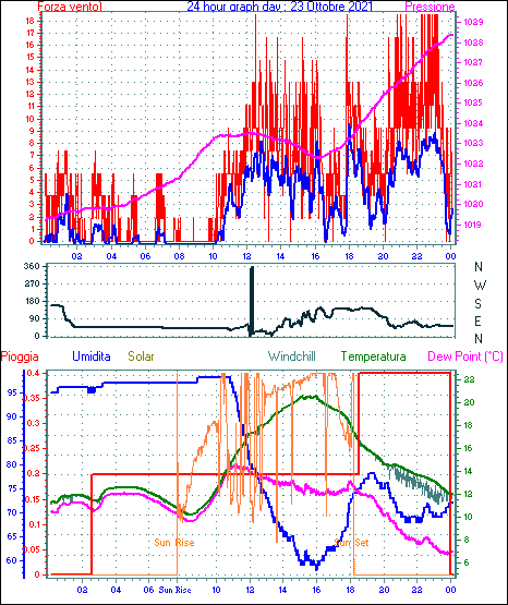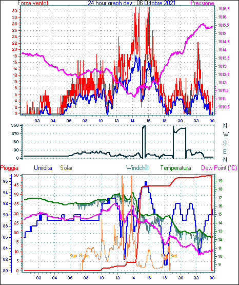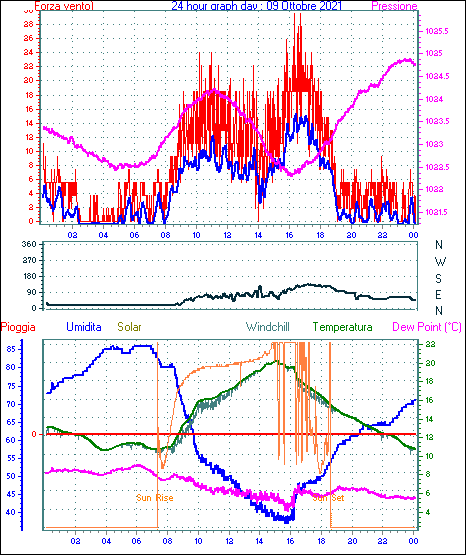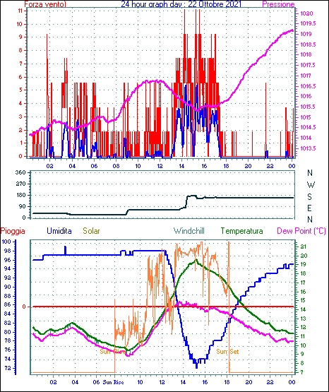Il massimo windspeed = 22.2 kmh from 045°( NE) giorno 06 tempo 15:58