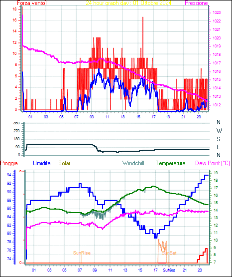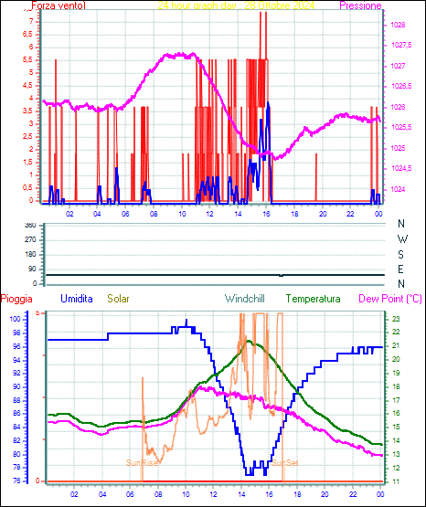 Velocità massima di raffica = 16.7 km/h da 052°( NE) giorno 01 tempo 15:39