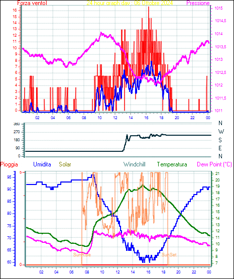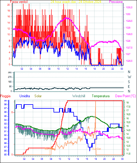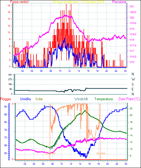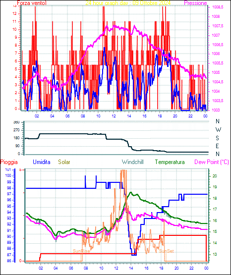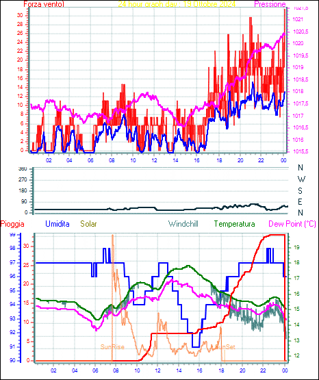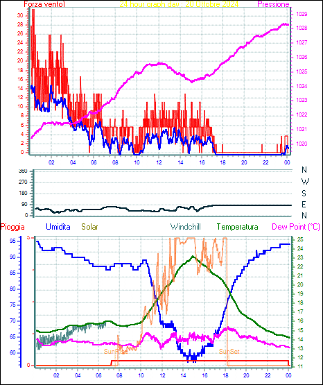 Il massimo windspeed = 31.5 kmh from 114°(ESE) giorno 08 tempo 17:19