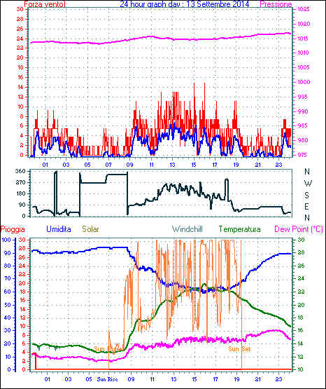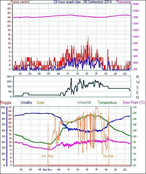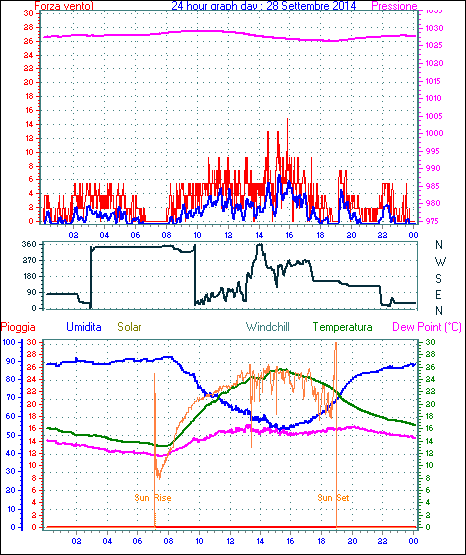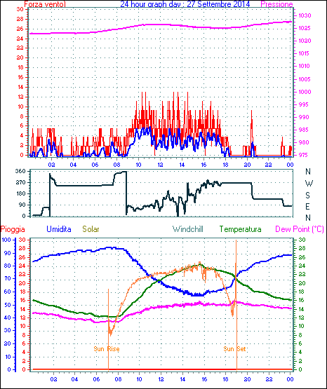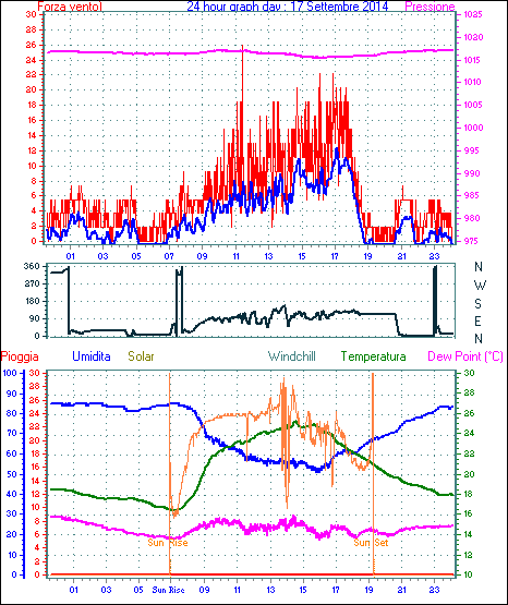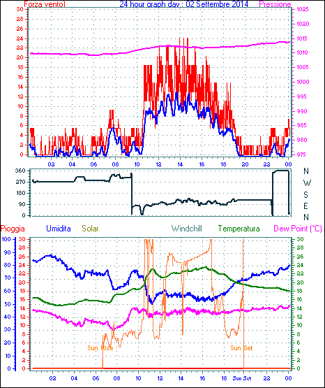 Velocità massima di raffica = 24.1 km/h da 135°( SE) giorno 02 tempo 14:40
