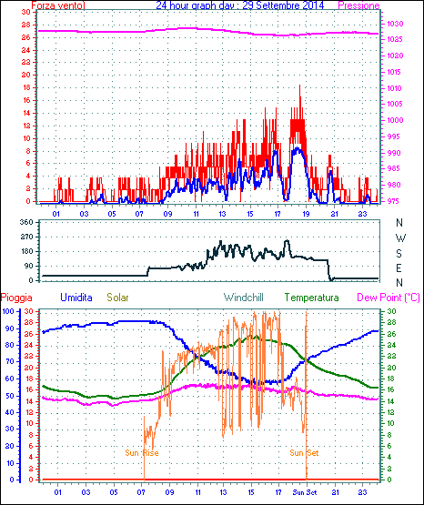 Velocità massima di raffica = 18.5 km/h da 135°( SE) giorno 29 tempo 18:33