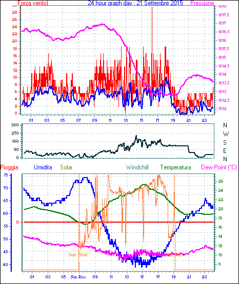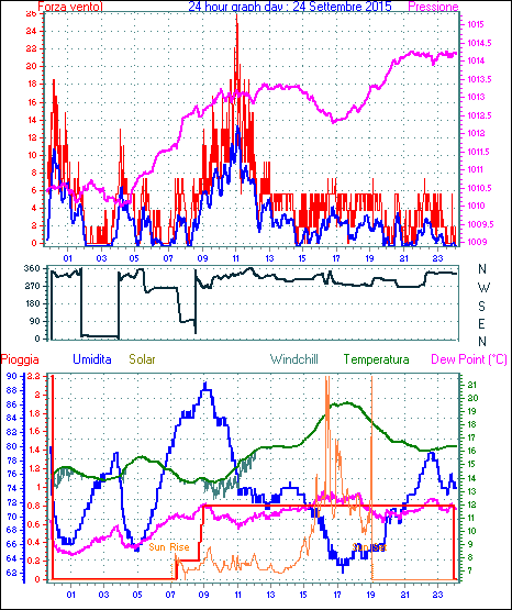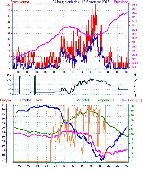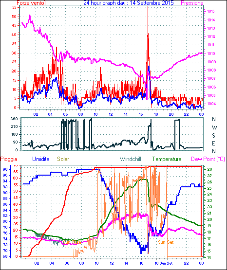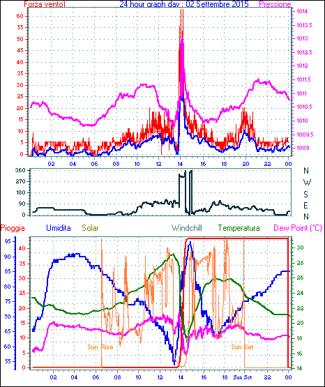 Velocità massima di raffica = 62.9 km/h da 315°( NW) giorno 02 tempo 14:16