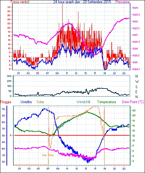 Il massimo windspeed = 16.6 km/h giorno 29 tempo 10:07