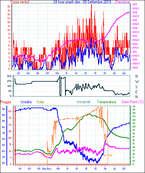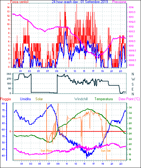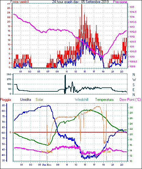 Pressione minima = 1009.1 hPa giorno 30 tempo 06:48
