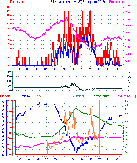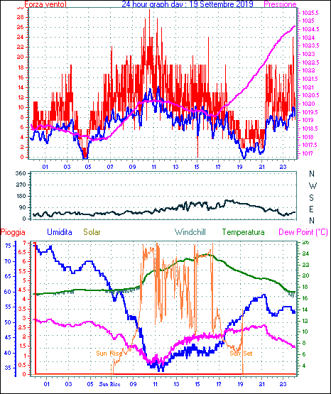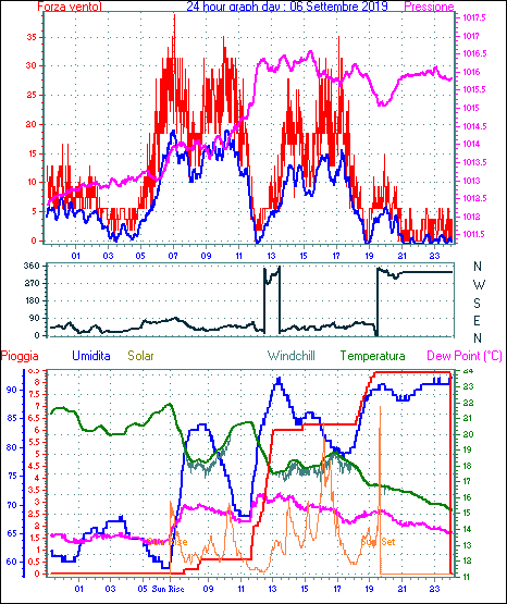 Il massimo windspeed = 24.1 kmh from 090°( E ) giorno 06 tempo 06:51