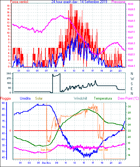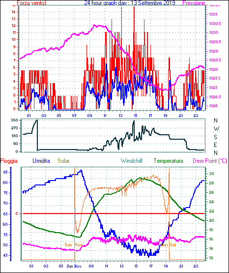 Minimum dewpoint = 13.1°C giorno 30 tempo 6:34
