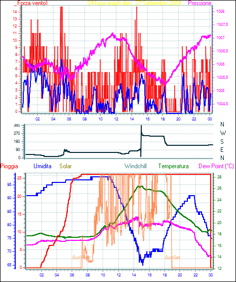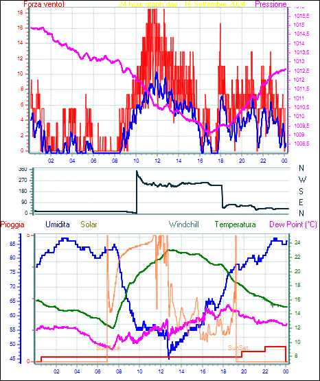 Velocità massima di raffica = 24.1 km/h da 159°(SSE) giorno 29 tempo 16:43